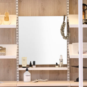 Halten Sie Ihre Schmuckstücke, kleinen Accessoires und Parfums ordentlich geordnet und leicht zugänglich mit unserem Décor+ Accessoire Ablage. Intelligent gestaltet, um sowohl funktional als auch ästhetisch zu sein, ist dieses Metallregal eine stilvolle Ergänzung für Ihren Raum - und perfekt als Ergänzung unter einem Décor+ Spiegel. Es wird mit integrierten Halterungen geliefert und lässt sich einfach zwischen zwei Décor+ Hängeschienen installieren.