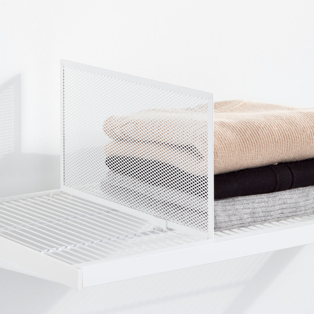Regaltrenner können beliebig auf dem Regalboden platziert werden, je nachdem, wie Sie den Raum für jedes unterteilte Fach aufteilen möchten.